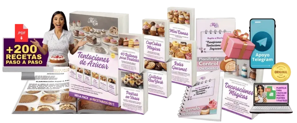 Megapack tentaciones de azúcar te llevará de fracasos vergonzosos a ser la reina de la repostería con Postres que se venden solos, mas confianza en ti misma y con el apoyo de una comunidad que te respalda a diario