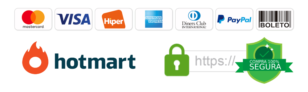 Aceptamos todas las tarjetas de crédito/débito, PayPal y otros métodos seguros a través de Hotmart. El cobro se realiza en tu moneda local, o en la moneda que seleciones según tu método de pago.
